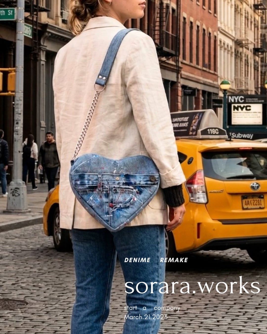 デニムリメイク ペイント(トリコロール) ハートバッグ