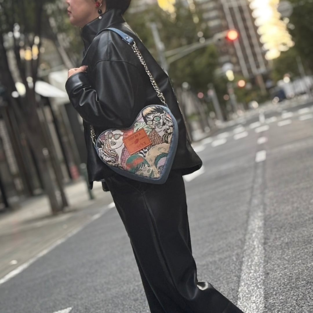 他では見ないハートの形をしたバッグ。