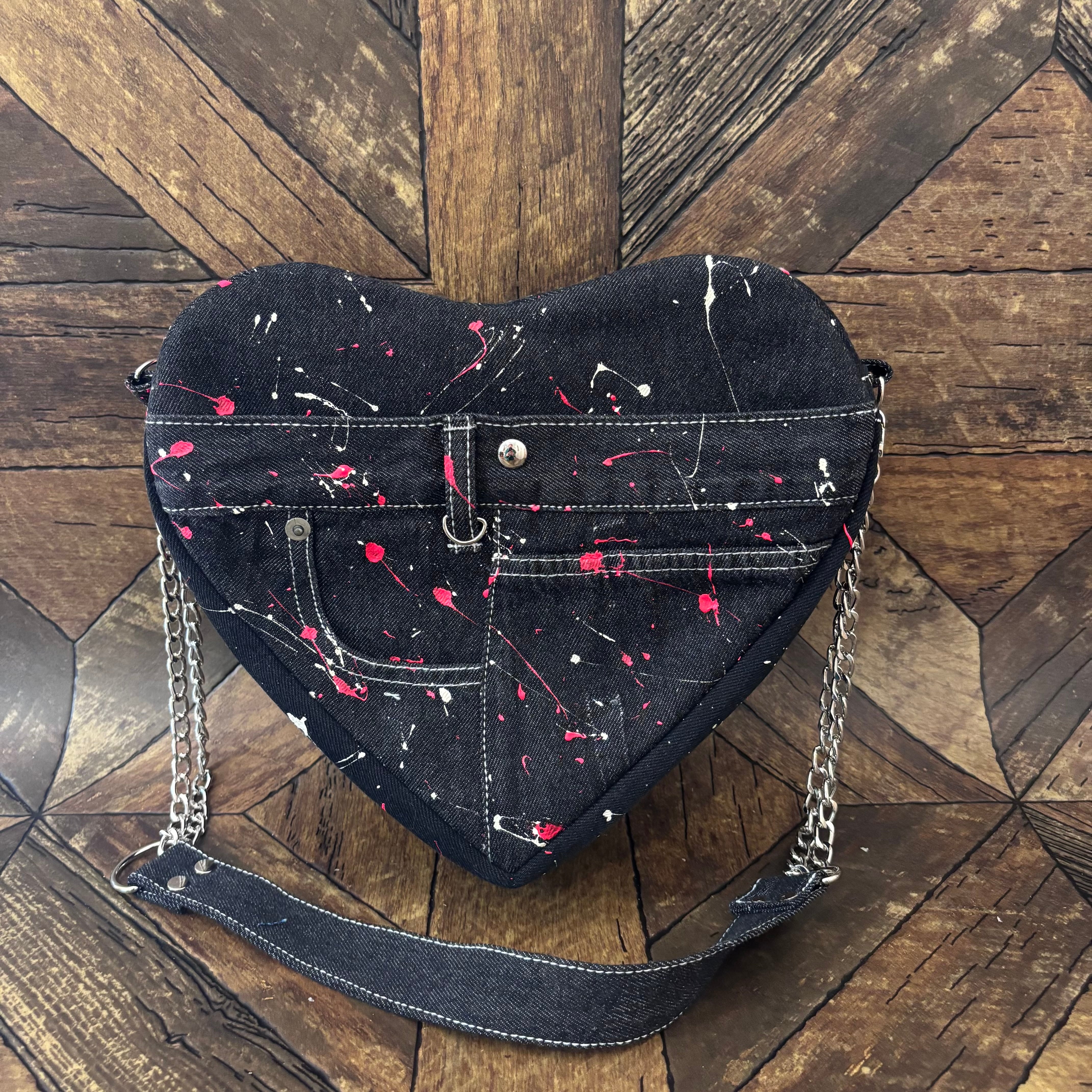 デニムリメイク ペイント(ピンク×ホワイト) ハートバッグ